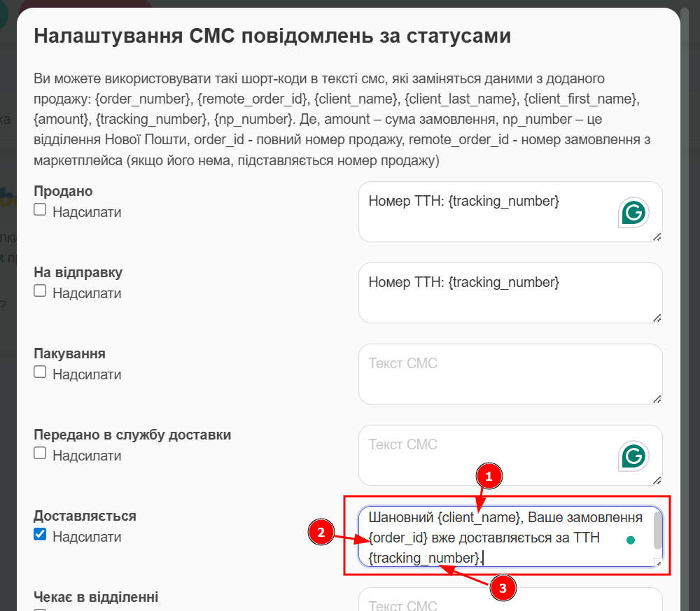 {tracking_number} – Трекінг номер.