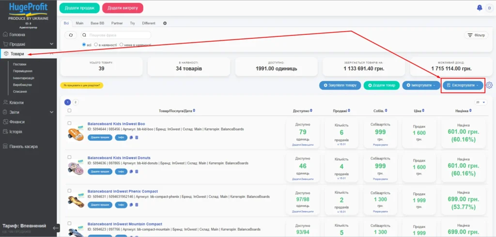 Використовуючи розділ "Товари" – "Експортувати" – "Прайс-лист", ви отримуєте зручний інтерфейс для створення професійних прайсів.